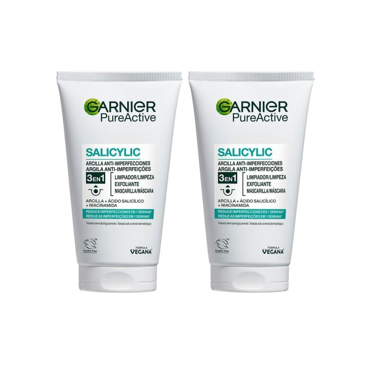 El Gel 3 en 1 con Arcilla de Garnier Pure Active, está enriquecido con Niacinamida y Arcilla para reducir imperfecciones y poros para una piel limpia y con un aspecto uniforme. Indicado para pieles mixtas a grasas, puede utilizarse de 3 maneras diferentes como limpiador, exfoliante o mascarilla.