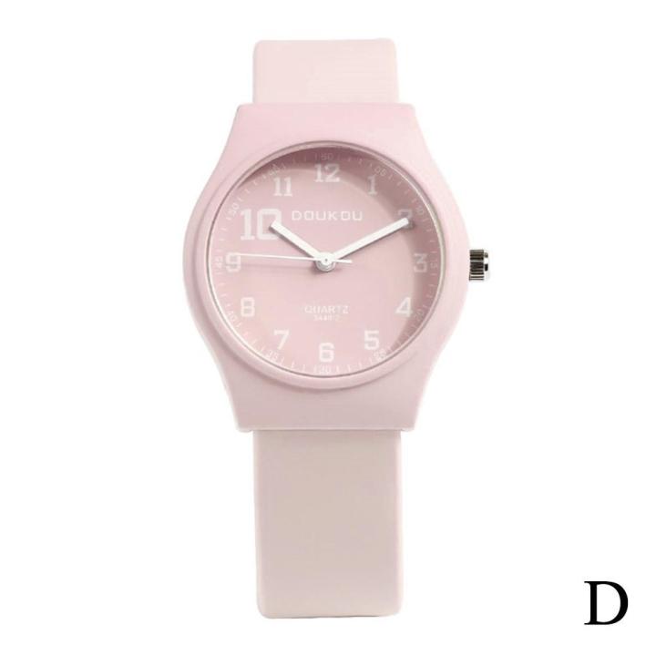 con colores dulces y marcadores de números arábigos, este reloj agrega un toque de moda a cualquier atuendo.