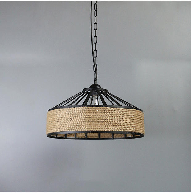 Aporta un toque retro con esta lámpara de araña vintage con jaula de hierro y cuerda de cáñamo, perfecta para añadir un toque de elegancia industrial a cualquier espacio.