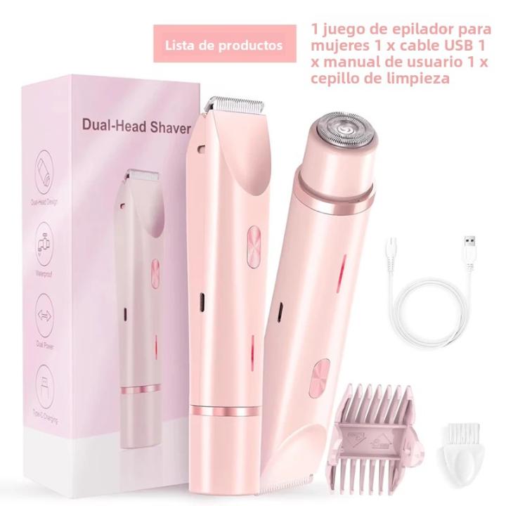 presenta un diseño 2 en 1 con un cabezal de afeitadora corporal y un cabezal de afeitadora facial, que ofrece versatilidad para todas las necesidades de cuidado.