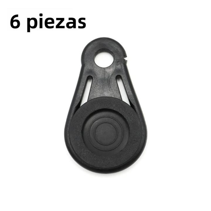 cada clip tiene un orificio en la parte posterior, lo que permite una fijación rápida a cuerdas cortavientos u otros métodos de sujeción.