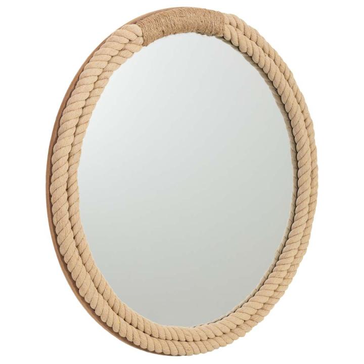 Espejo de madera y cuerda de polipiel marrón, D39x2,5h cm