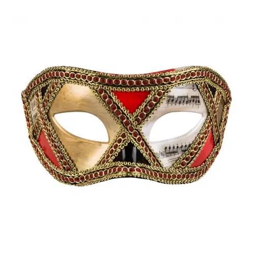 El artículo incluye: Antifaz veneciano decorado con pasamanerías, colores metalizados y un vinilo de temática musical. También contiene cinta para adaptar al rostro.