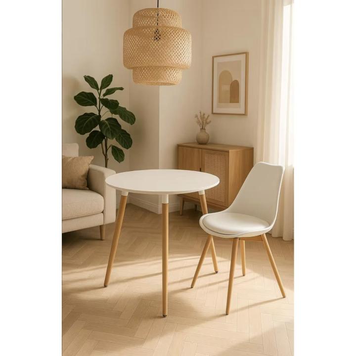 En tonos blancos y madera, la Mesa Redonda 80 cm se adapta a prácticamente cualquier espacio, comenzando por tu propio salón. Si, por otra parte, cuentas con un balcón lo suficiente ancho, esta mesa también es una genial opción.