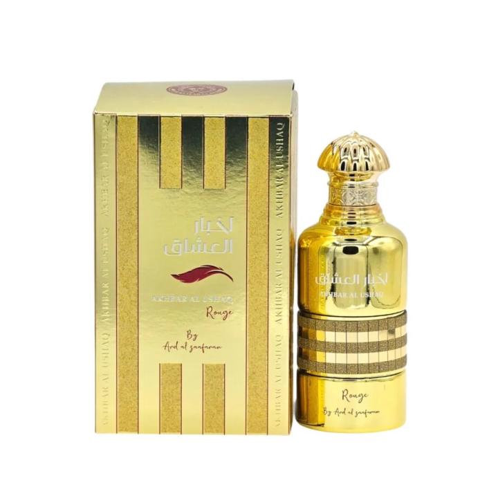 Descubra Akhbar Al Ushaq Rouge, una fragancia femenina oriental. El azafrán, el ámbar y el ámbar gris se combinan para crear un aroma cálido y cautivador. Elegante e intensa, esta fragancia revela tu sensualidad con sofisticación.