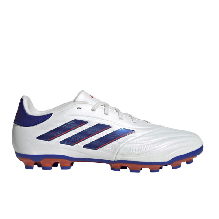 BOTAS FUTBOL ADIDAS COPA PURE 2 LEAGUE 2G/3G AG Estas botas forman parte de la colección adidas Advancement Pack del 2024. Suela 2G/3G AG específicamente diseñada para poder jugar en cualquier terreno de césped artificial desde 2ª a 3ª generación. Añaden mas tacos y mas circulares que las hacen excelentes para césped artificial. Parte superior fabricada con la combinación de suave piel sintética y malla transpirable que ofrecen un buen ajuste al pie. El 50% de los materiales del upper son reciclados. Incorpora la tecnología High Definition Texture, unos pequeños relieves en las zonas de contacto con el balón que mejoran el grip con el mismo.