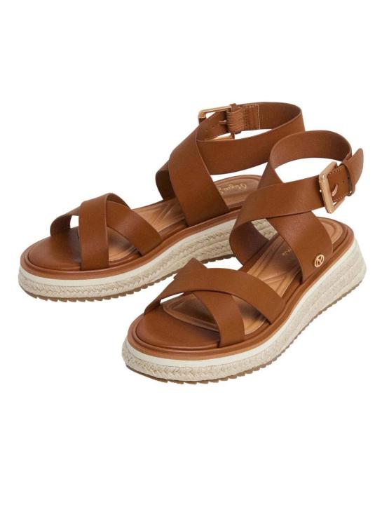Las sandalias 'Kate Nature' de Pepe Jeans son un modelo elegante y versátil diseñado para mujeres. Estas sandalias cuentan con una plataforma delantera y una cuña que proporcionan altura y comodidad. El cierre es tira cruzada con hebilla, y presentan un diseño unicolor en color marrón avellana. El material exterior es de poliuretano (PU), mientras que el interior y la plantilla son de tejido sintético. La suela está hecha de fibra sintética. Una elección ideal para tus días de verano, combínalas con tus shorts favoritos o con vestidos.