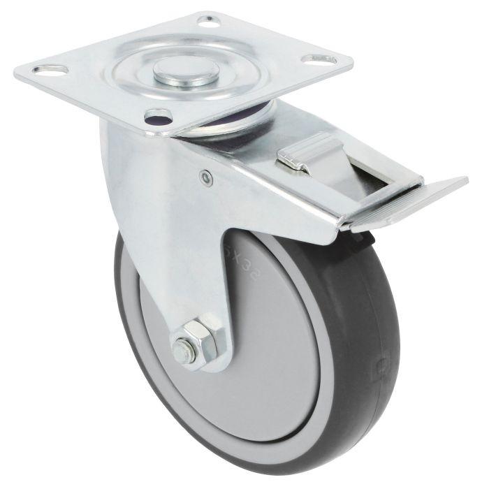 RUEDA 2530-100 C/FRENO GOMA GRIS AMIGMEDIDAS: Ø100 mm MATERIAL: Goma ACABADO: Gris ATRIBUTO: Gris LONGITUD cms: 2 ANCHO cms: 11 ALTO cms: 24.5.