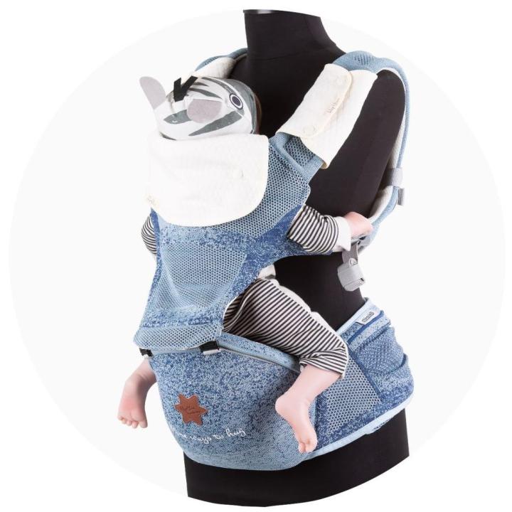 Este portabebés se adapta a las necesidades cambiantes con posiciones para la cadera y modo portabebés. Los cinturones ajustables y los baberos desmontables permiten una personalización óptima. El bolsillo lateral con cremallera agrega conveniencia.