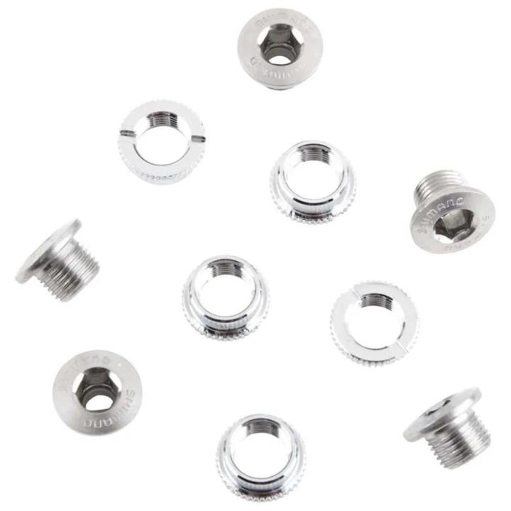 Mejora el rendimiento de tu ciclismo en pista con el juego de tornillos para platos SHIMANO Dura-Ace Track 7710, de ingeniería de precisión. Este juego de 5 tornillos ofrece la seguridad sólida como una roca del plato y la estética elegante que exigen los ciclistas de pista serios.
