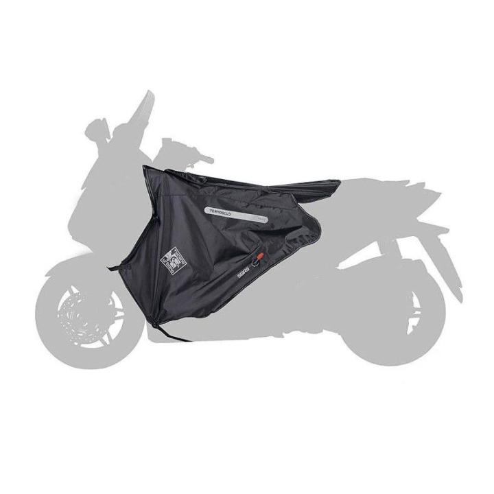 ESPECIFICACIONES TÉCNICAS El cubrepiernas original con SISTEMA ANTIflameo PATENTADO S.G.A.S.: las cámaras hinchables que están situadas a los lados evitan el flameo de la funda cuando se circula a gran velocidad. – Construcción con tres capas para asegurar la estanqueidad del aire y protección térmica:– Funda exterior impermeable de Poliamida resistente y costuras termoselladas– Membrana interna 1