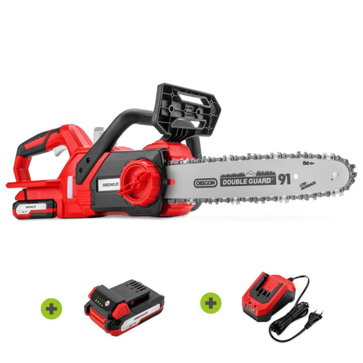 Con la motosierra de batería de litio 20V de Greencut podrás realizar todo tipo de trabajos de poda en ramas de árboles o cualquier otra tarea forestal. La motosierra GS200L tiene una espada de 304 mm (12”) de la marca Oregon, muy ligera y manejable, que te permitirá trabajar cómodamente minimizando posibles bloqueos y aumentando la precisión del corte.