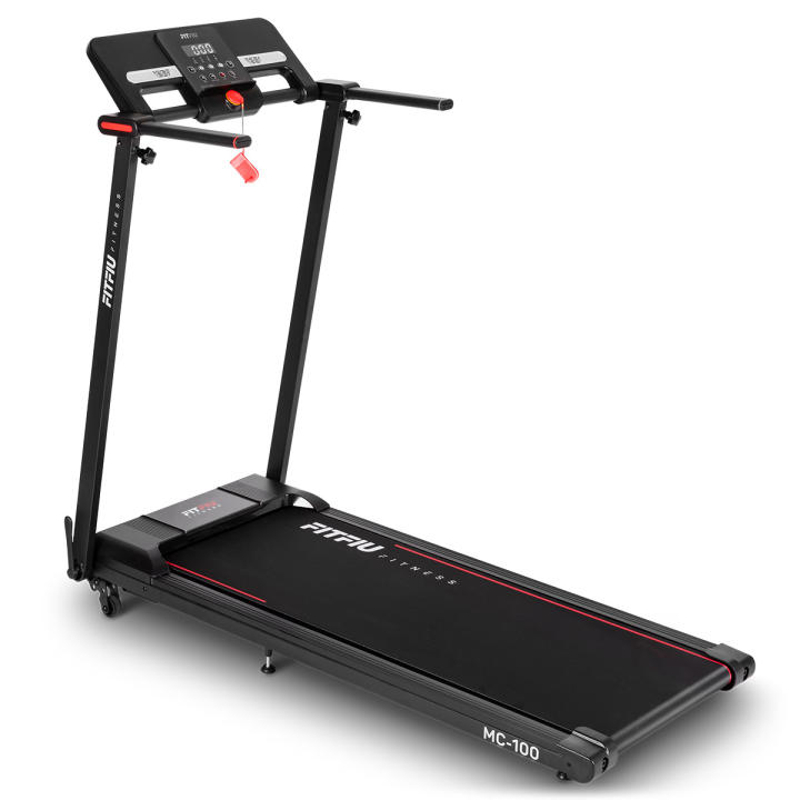 Su sistema de amortiguación reduce el impacto en tus articulaciones, brindándote mayor comodidad en cada zancada. Con un diseño plegable plano, podrás guardarla debajo de la cama o el sofá y moverla fácilmente gracias a sus ruedas de transporte. La MC-100 está equipada con un sistema de seguridad que detiene la cinta en caso de emergencia, asegurando un uso seguro y confiable en cada sesión.