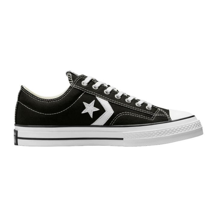 Zapatillas Converse Negras Star Player 76 de Corte BajoSTAR PLAYER 76Un tesoro de los archivos con orígenes deportivos y reinventado para la calle. La lona de alta densidad, los detalles clásicos y la comodidad adicional hacen que estas Star estén listas para volver a brillar.Detalles del producto Sneakers de lona de corte bajo Amortiguación OrthoLite para más comodidad durante todo el día Forro de malla para una mayor transpirabilidad Icónicos detalles de estrella y galón Suela exterior clásica con patrón de ladrillos SKU: A01607C