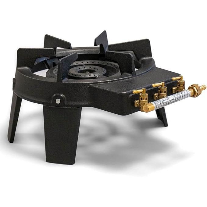 - La estufa funciona con una manguera y un regulador, que el cliente debe instalar correctamente para evitar fugas de gas