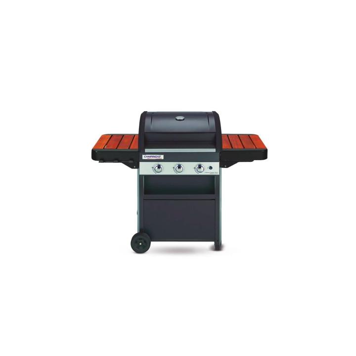 barbacoa de gas, barbacoa con quemadores de acero inoxidable, barbacoa con encendido electrónico, barbacoa Campingaz, parrilla con tecnología EvenTemp, barbacoa fácil de limpiar, barbacoa con mesas plegables.