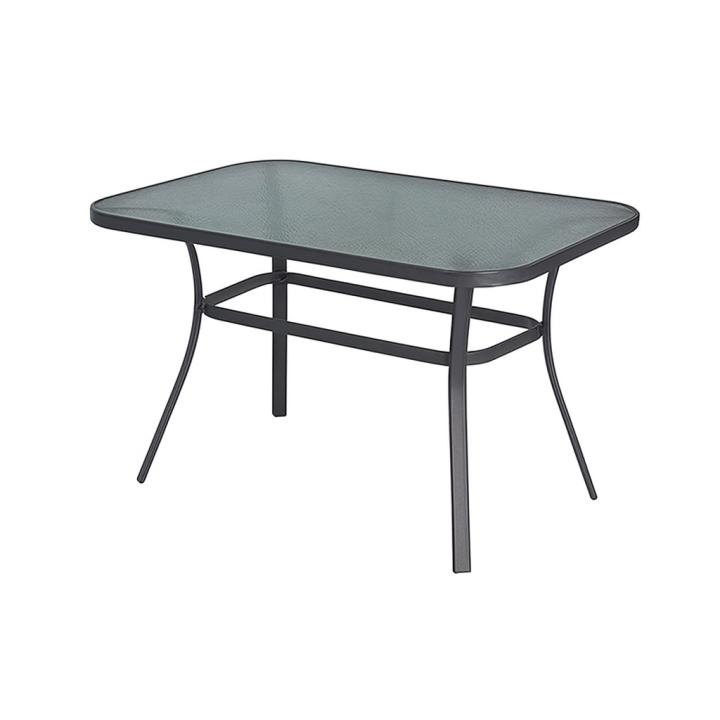 - Estructura resistente: La mesa cuenta con una estructura en acero gris antracita, tratada para resistir las inclemencias del tiempo y asegurar su durabilidad en exteriores.