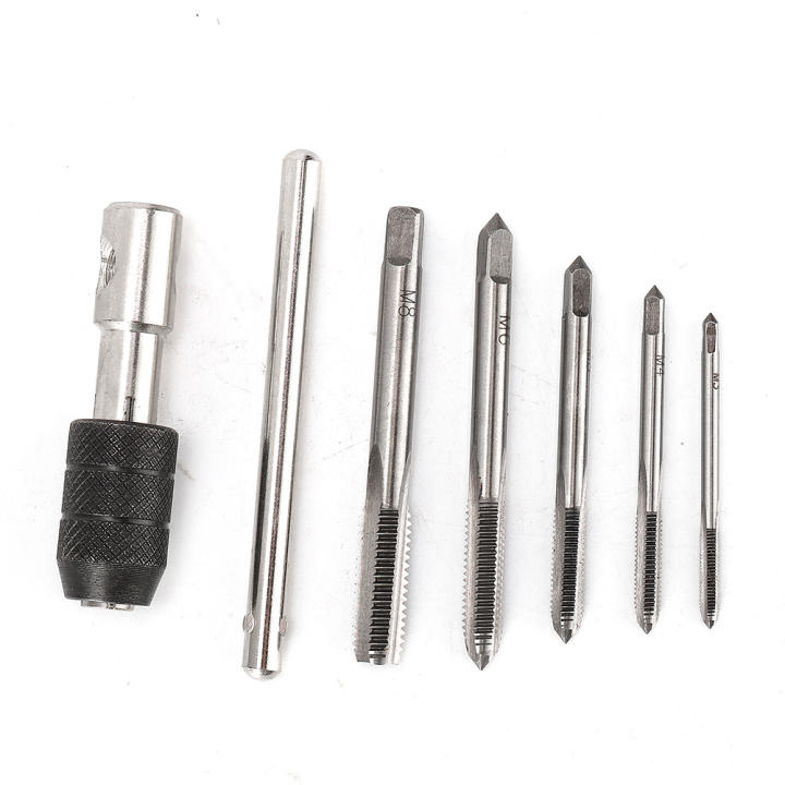 incluye un juego de brocas para machos de 6 piezas que van desde M3 a M8, que satisface diversas necesidades de roscado.