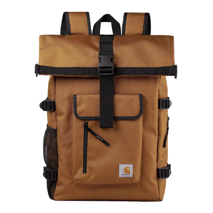 Mochila Marrón Carhartt Philis Backpack Hamilton Brown La Philis Backpack es un modelo ampliable fabricado con lona de poliéster reciclado y repelente al agua. Presenta un compartimento principal sin forro con cierre de solapa y cremallera, un bolsillo interior acolchado y correas para los hombros ajustables. I031575_2LS_XX Talla única: 50 x 33 x 13 cm Longitud total (desplegado): 68 cm 21,5 litros 100 % poliéster (reciclado) Repelente al agua Sin forro Bolsillo interior acolchado para portátil (máx. 15") Correas para los hombros ajustables Etiqueta cuadrada