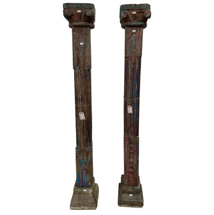Dos columnas de madera acabado artesanal 26x26x194h cm