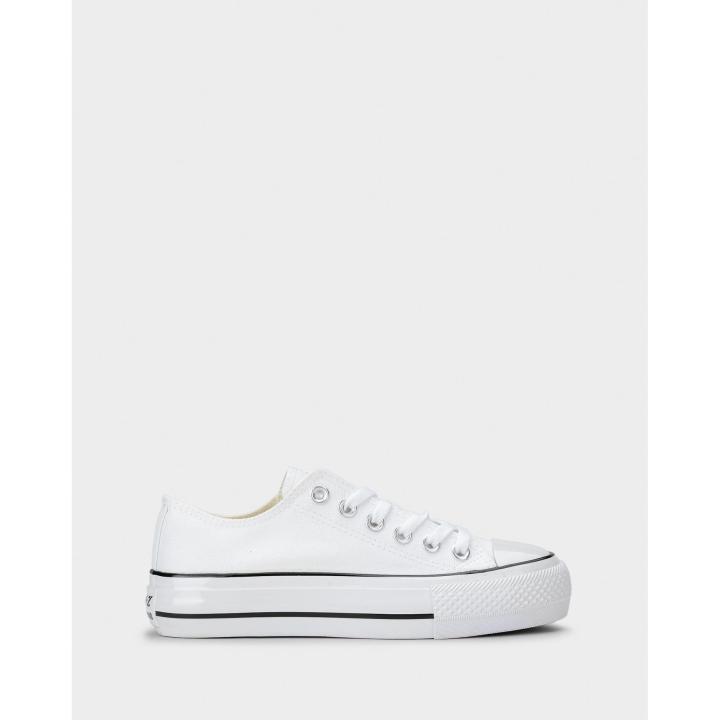 Zapatillas de lona blanco con doble suela, Cierre con cordones para un mejor ajuste. Plataforma de 5 cm. Cómodo y de alta calidad.