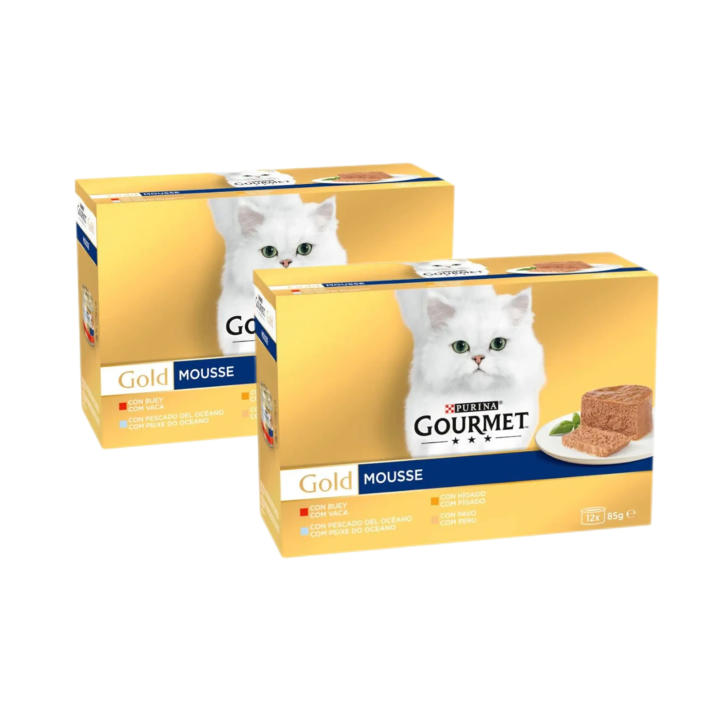 GOURMET - Gold PACK 2 (24x85 gr) - Mousse Pack Surtido (Buey, Pescado del Océano, Hígado y Pavo) (2 Cajas de 12x85 gr)