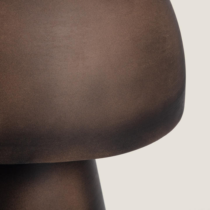 Lámpara de Mesa Metal Telia es una pieza de iluminación decorativa con un fuerte carácter escultórico. Su diseño en forma de seta y su acabado en negro envejecido con matices cobrizos la convierten en una lámpara de mesa con personalidad propia, ideal para espacios modernos, eclécticos o con un toque industrial.