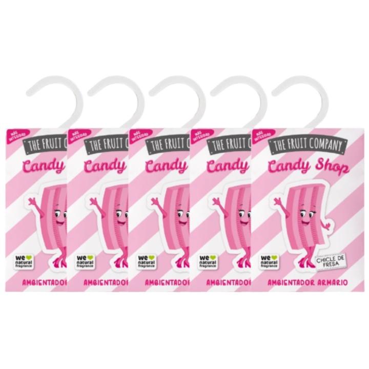 • 🍭 Pack de 5 Ambientadores – Disfruta de 5 unidades con fragancias intensas de la colección Candy Shop de The Fruit Company, ideales para armarios y cajones.