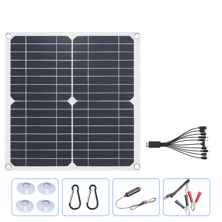 Equipado con puertos USB duales, el kit de panel solar permite la carga simultánea de dispositivos, lo que mejora la comodidad mientras viaja.
