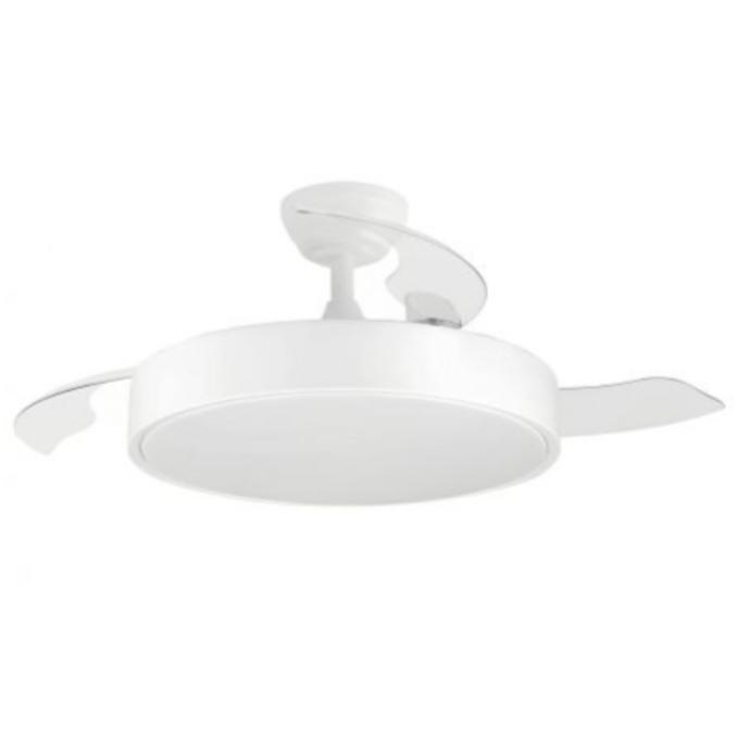 Las aspas retráctiles se recogen automáticamente al apagar el ventilador, manteniendo una estética discreta cuando no está en uso.