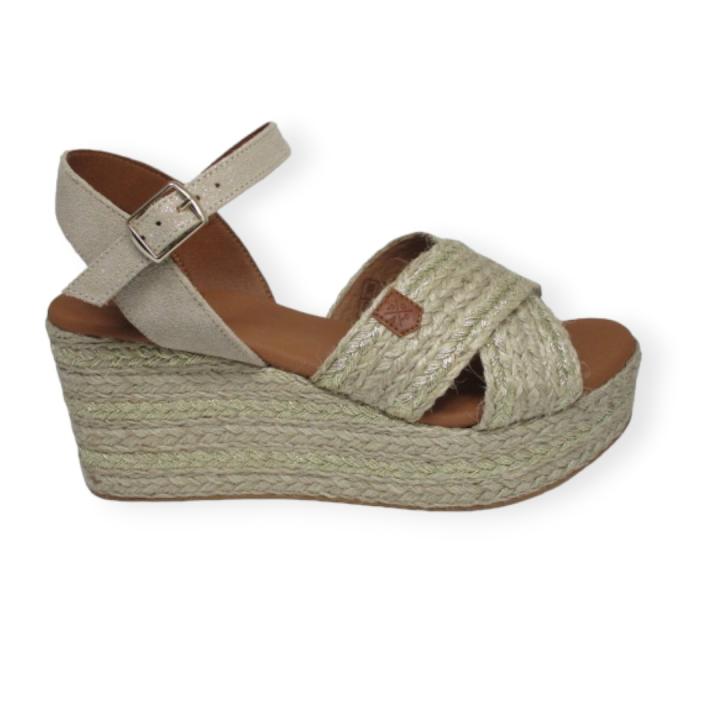 POPA BENIJO Oro Sandalia con cuña alta pala para mujer