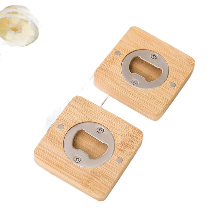 Abridor de cerveza magnético portátil, tapa de cerveza redonda cuadrada de bambú, abridores de botellas de madera para el hogar, cocina y Bar - details 8