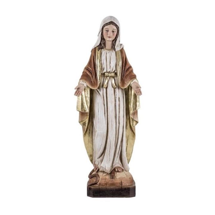 Reflejando dulzura y pureza, esta figura de la Virgen Milagrosa de 30 cm está elaborada en resina con un tono de madera clara que le confiere una estética serena. Perfecta para quienes desean mantener una imagen constante de fe y guía.