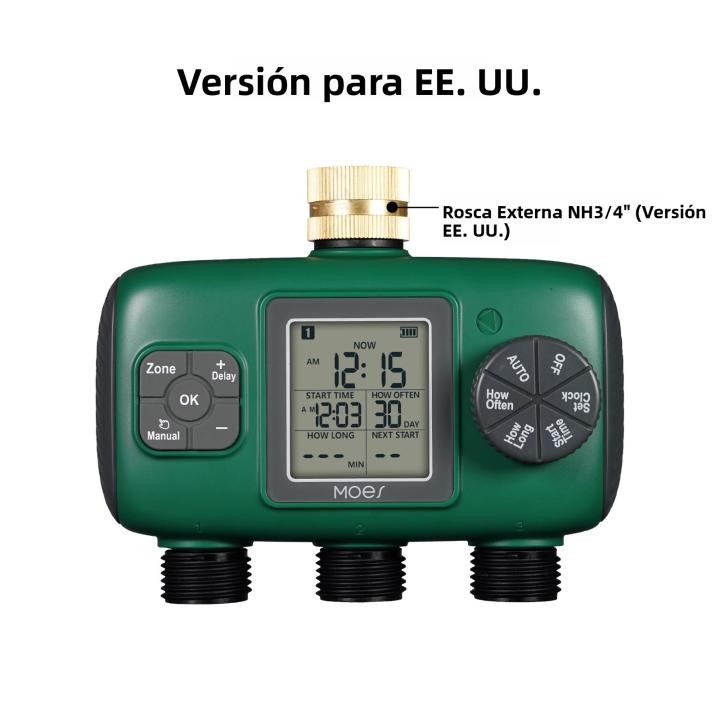 riego de zonificación eficiente con 3 salidas, perfecto para gestionar el uso de agua en todo el jardín.