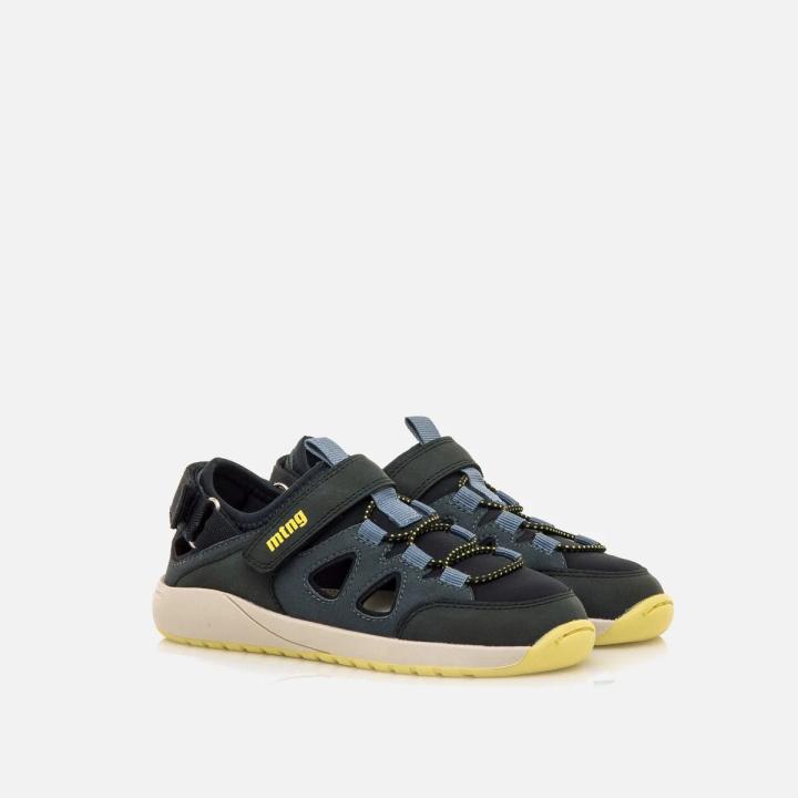 Sandalias de color marino para niño, modelo Free de Mustang. Su estructura permite una ventilación óptima gracias a los cortes laterales, mientras que el ajuste adhesivo garantiza una sujeción firme. La suela de goma con detalles amarillos ofrece un excelente agarre, adaptándose a superficies variadas. Diseñado y desarrollado especialmente en colaboración con el Dr. Juanjo López, traumatólogo deportivo e infantil, para respetar el desarrollo natural del pie del niño y la niña. Gracias a su puntera ancha permite el libre movimiento de los dedos dentro del zapato.Las plantillas extraíbles facilitan comprobar si la talla del calzado es la correcta para tu hijo. Además, su fácil apertura facilita que el niño pueda descalzarse y calzarse de forma autónoma. Con certificado VEGANO sellado por INESCOP, el cual garantiza que la naturaleza química principal del material no se corresponde con fibras de origen animal.
