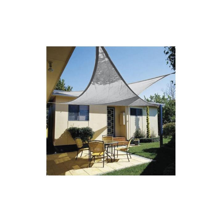 El toldo vela triangular de 5x5x5 metros en color blanco es la opción ideal para proporcionar sombra en jardines, terrazas, patios y cualquier espacio al aire libre. Su diseño triangular moderno y su color blanco elegante se integran perfectamente en cualquier entorno, aportando un toque sofisticado y funcional. Fabricado con polietileno de alta densidad (HDPE) con protección UV, este toldo bloquea los rayos solares dañinos mientras permite la circulación del aire, evitando la acumulación de calor.