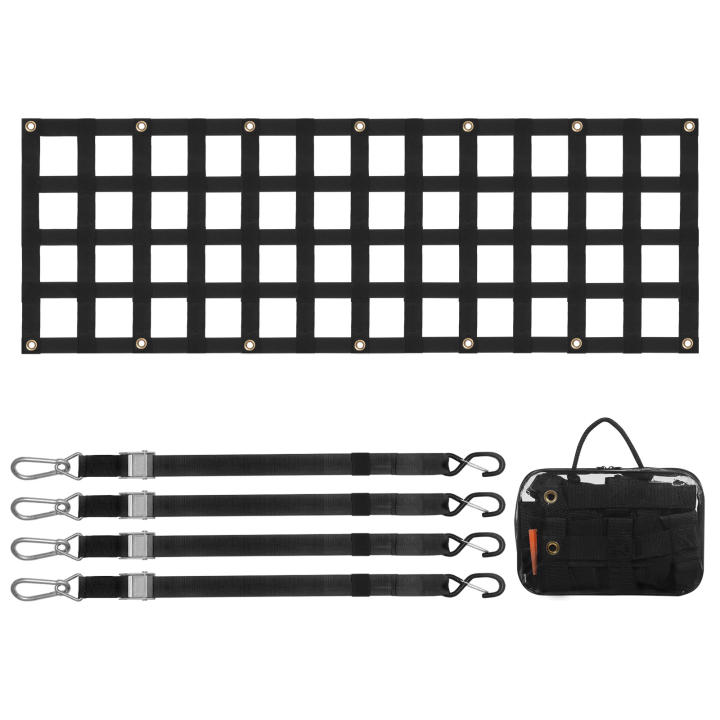- Lo que obtendrá: Incluye red para el portón trasero, correas ajustables, bolsa transparente de PVC y manual de instrucciones.