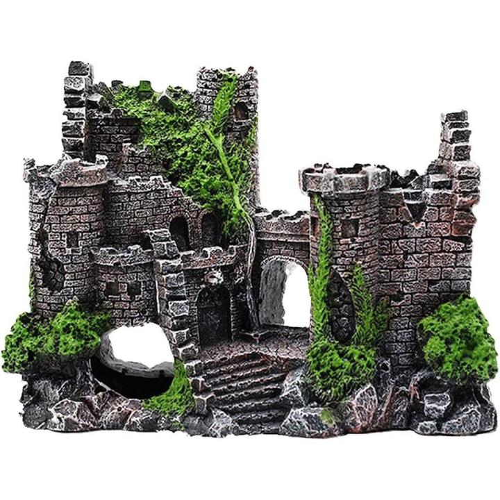 Diseño de Castillo antiguo, decoración de acuario de resina, escondites, cueva de piedra, casa de escondite, accesorios para pecera para tortuga camarón Betta - details 0