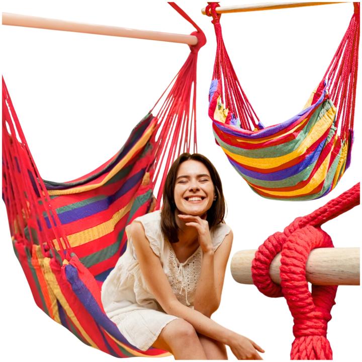 ▶️ SILLA BRASILEÑA COLGANTE HAMACA SILLÓN DE JARDÍN COCOON 100 × 100 cm ♥️ ¡Esta silla colgante es el complemento perfecto para tus muebles de jardín y un lugar excepcionalmente cómodo para descansar y relajarse en la comodidad de tu hogar! ♥️ ¡La hamaca está hecha de cuerdas trenzadas gruesas, por lo que durará muchas temporadas! ♥️ ¡Diseñado para proporcionar una relajación maravillosa y decorar tu hogar y jardín! ✅ travesaño de madera estable ✅ asiento grande y cómodo ✅ material resistente a la abrasión ✅ cuerdas trenzadas fuertes ✅ patrón único que llama la atención ♥️ UN LOOK QUE ATRAE LA ATENCIÓN ▶️ El travesaño de madera es un elemento natural que luce hermoso en cualquier entorno. ▶️ Los fuertes cordones de sujeción combinan con el color del diseño de la hamaca, lo que garantiza una apariencia general hermosa y cohesiva. ▶️ Perfecto para quienes valoran la estabilidad, la estética y la comodidad. ▶️ Un acabado cuidadoso y un diseño único harán de la hamaca el centro de atención en cualquier habitación. ✅ ESTABLE Y SEGURO ▶️ El travesaño de madera proporciona un soporte estable para la hamaca, lo que garantiza un uso seguro y una superficie para dormir cómoda y amplia. ▶️ El material duradero del que está hecha la silla es resistente a la abrasión y los gruesos cordones trenzados garantizan la seguridad. ▶️ Un orificio de montaje resistente asegura que la hamaca cuelgue de forma estable. ✅ TRAVESAÑO DE MADERA El travesaño de madera asegura una distribución uniforme de la tela, lo que significa que la hamaca se despliega como una silla: ¡puede tomar el sol, leer o simplemente relajarse en ella libremente! ✅ MATERIAL NATURAL La hamaca está hecha de 100% algodón, lo que la hace agradable al tacto y garantiza una ventilación adecuada en los días calurosos. ✅ ESPECIFICACIONES Material: 280 g/m² 100% algodón Longitud de la barra separadora: 90 cm Longitud del asiento: 100 cm Ancho del asiento: 100 cm Longitud de montaje (por encima de la barra separadora): 35 cm Diámetro de la barra separadora: 3,4 cm Longitud de la cuerda: 40-60 cm Carga máx.: 120 kg ❤️ En nuestras otras ofertas encontrarás otros diseños de hamacas y accesorios de jardín únicos. ¡Descubre lo que hemos preparado para ti!