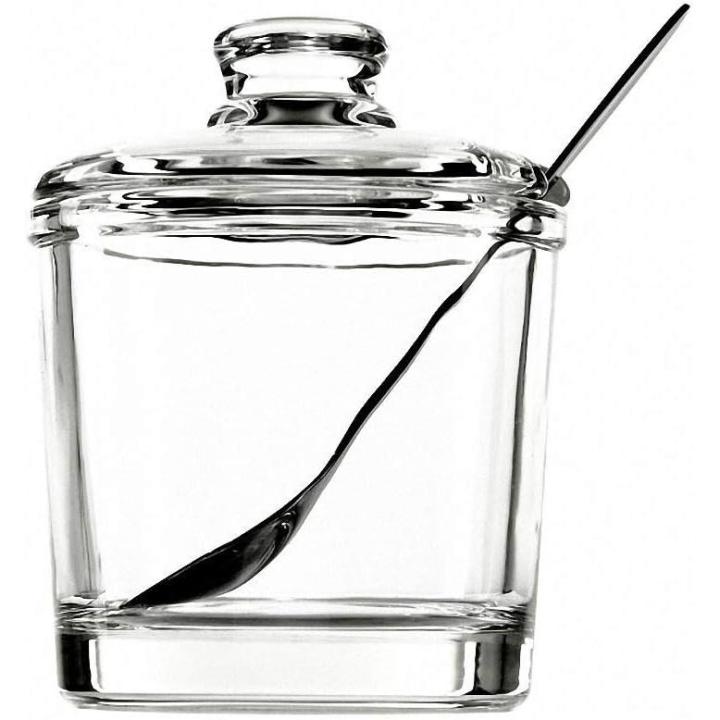 1 jarra de azúcar clásica de vidrio transparente con tapa,cuchara de servicio,jarra de sal,jarra de pimienta,recipiente de almacenamiento,jarra de especias,dispensador,caja de azúcar,condimentos,estante de especias,porta condimentos para cocina doméstica